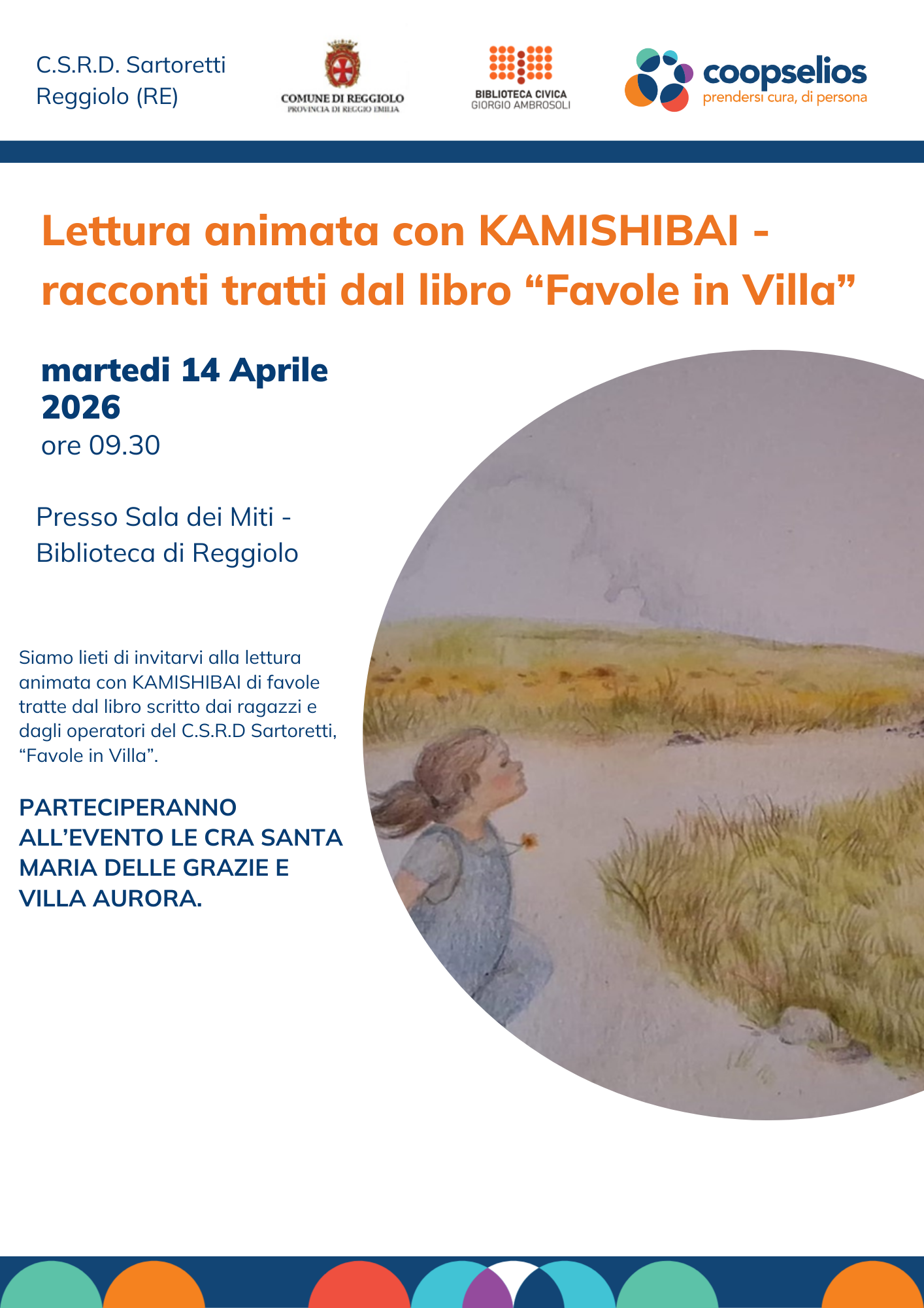 I ragazzi e gli operatori del C.R.S.D. Sartoretti terranno una lettura animata con Kamishibai di favole tratte dal libro scritto da loro "Favole in Villa".